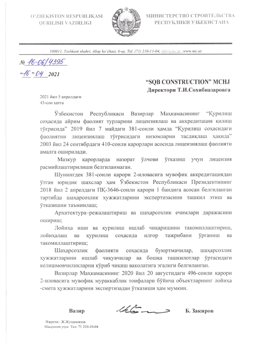 ООО «SQB Construction» специализирована в оказании услуг в сфере строительства и архитектуры.